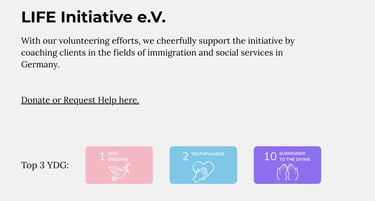 In addition to the Sustainable Development Goals, we intend to focus our efforts along the ideals of a Yogic way of living. These ideals have been formulated by the Sage Patanjali as the "Yamas & Niyamas".